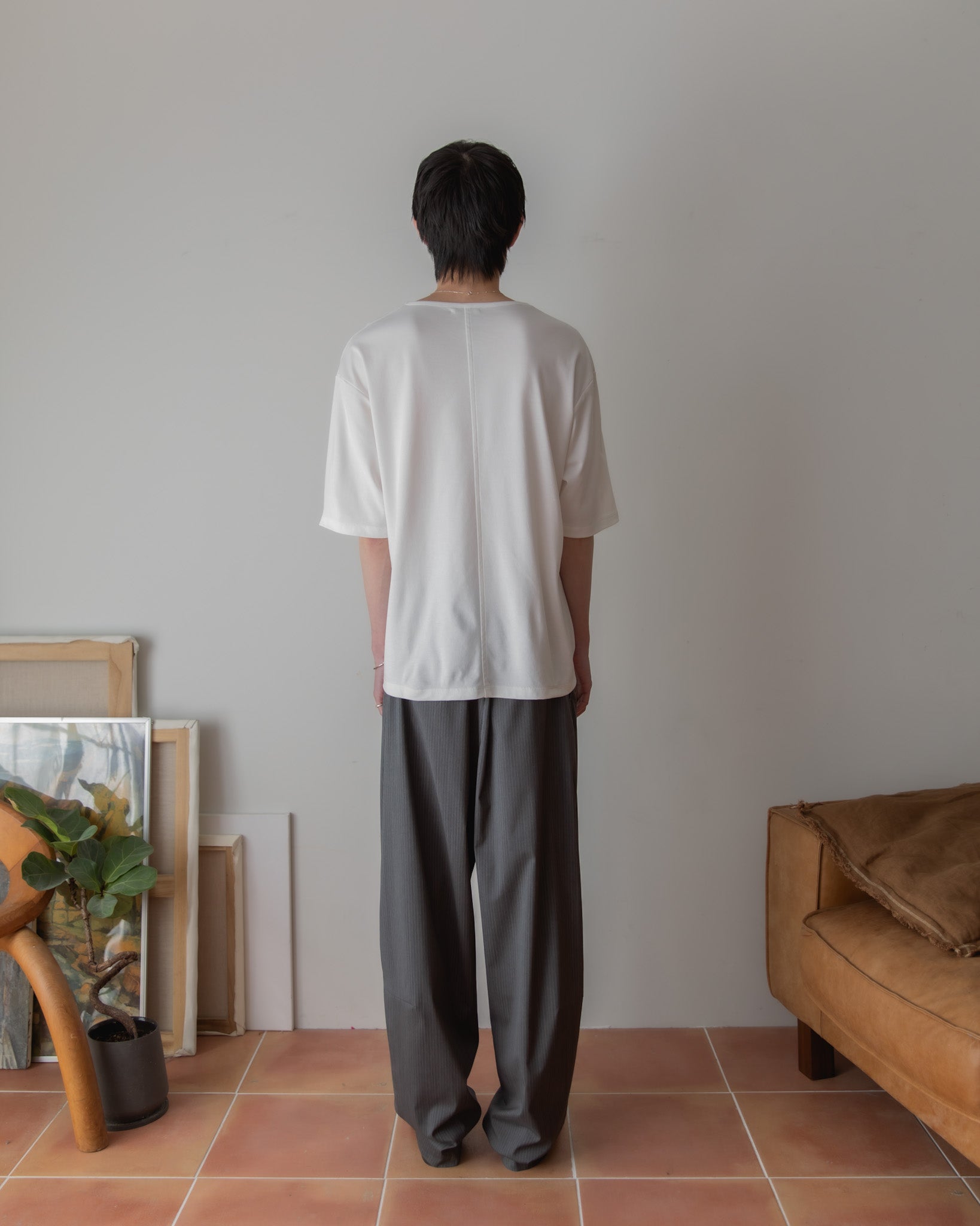 襟元には10mm幅のバインダーネックを採用し、伸びを抑えながら端正な印象を保ちます。